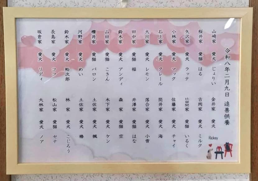 【2月度】追善供養・納骨堂供養 投稿日 2026年2月9日 著者 pet カテゴリー おしらせ 2月度追善供養を執り行いました。次回は3月9日(月)9時より、お隣の南大沢霊園 2階 礼拝堂にて執り行います。お申込みは窓口、お電話にて承ります。ご供養の様子バレンタインらしく華やかなお花をご用意いたしました納骨堂ご供養のようす- 投稿 Threads - LINE - コピー